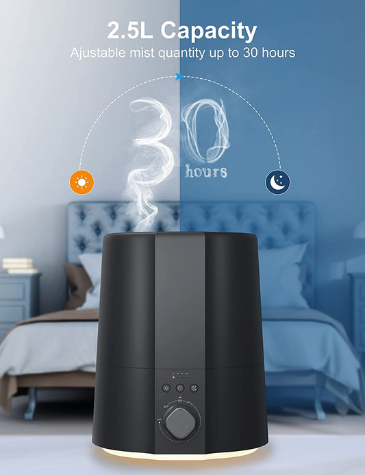 2.5L Cute Cool Mist Humidifier for Baby, Plants,Night Light, 4 Timing, Auto Shut-Off and 30H Humidifying (Black)