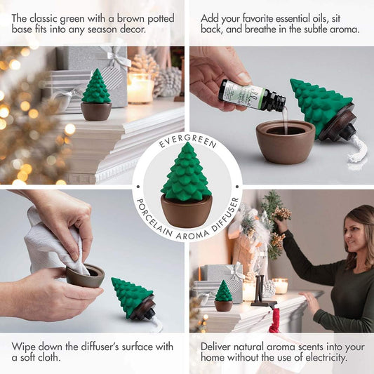 , Evergreen Christmas Tree Porcelain Aroma Diffuser, Holiday Décor for Essential Oils