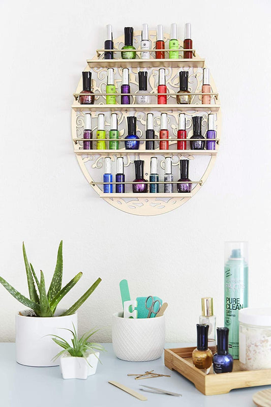 Essential Oil Holder Organizer Shelf - Gold - Nail Polish and Essential Oils Storage - Metal Wall Hanging Mounted Rack for Bottles - Tree of Life Shelves