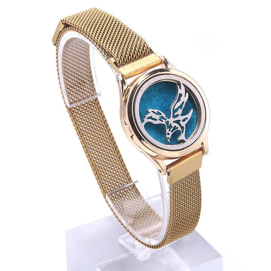 Essential Oil Diffuser Bracelet for Women Stainless Steel Watchband Aromatherapy Locket Adjustable Bracelet with Free Pads