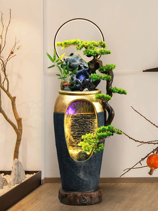 TT Light Luxury Floor Water Fountain Landscape Home Vase Humidifier Hallway and Living Room Decorations Ornaments
