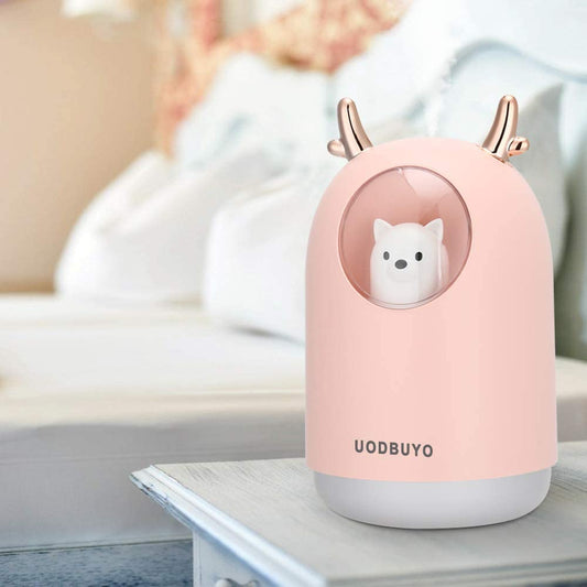 Portable Cool Mist Humidifier - 300Ml USB Mini Air Humidifier with 10 Pcs Humidifier Sticks, 7 Color Night Light Room Humidifier for Bedroom Office Desk,Car,Travel (Pink)