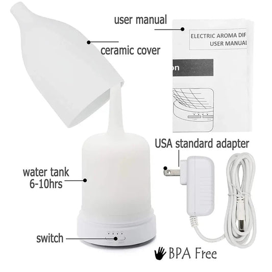 Essential Oil Fragrance Aromatherapy Diffuser Ceramic Fashionable Ultrasonic Air Humidifier for Home Bedroom Living Room 120ML