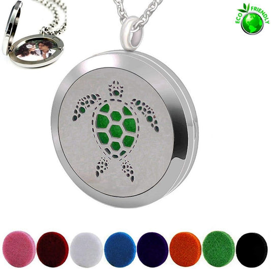 Essential Oil Diffuser Necklace, Aromatherapy Stainless Steel Turtle Chain Pendant Locket Jewelry for Men Women