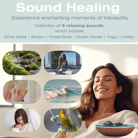 Innovative Aromatherapy Oil Diffuser with Essential Oil Set for Large Room, Zen Design, 6 Relaxing Sounds, White Noise Machine, 7 Night Lights, Ultrasonic Super Quiet Cool Mist Aroma Humidifier