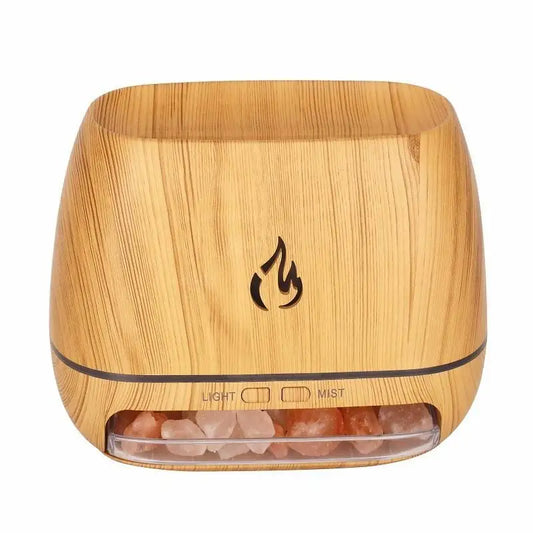 Wood Grain Himayan Crystal Salt Stone Aroma Humidifiers 3D Fme Fire Aromatherapy Essential Oil Diffuser with Night Light